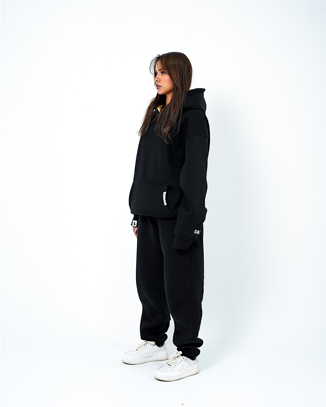 Wide-leg sweatpants with adjustable hem straps for a customizable fit.