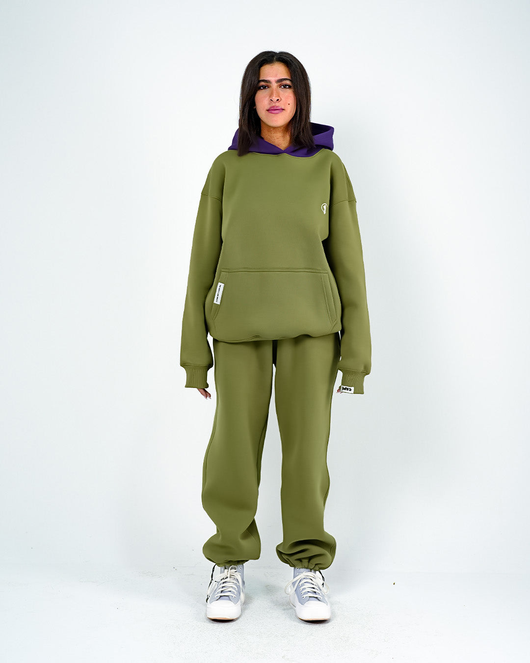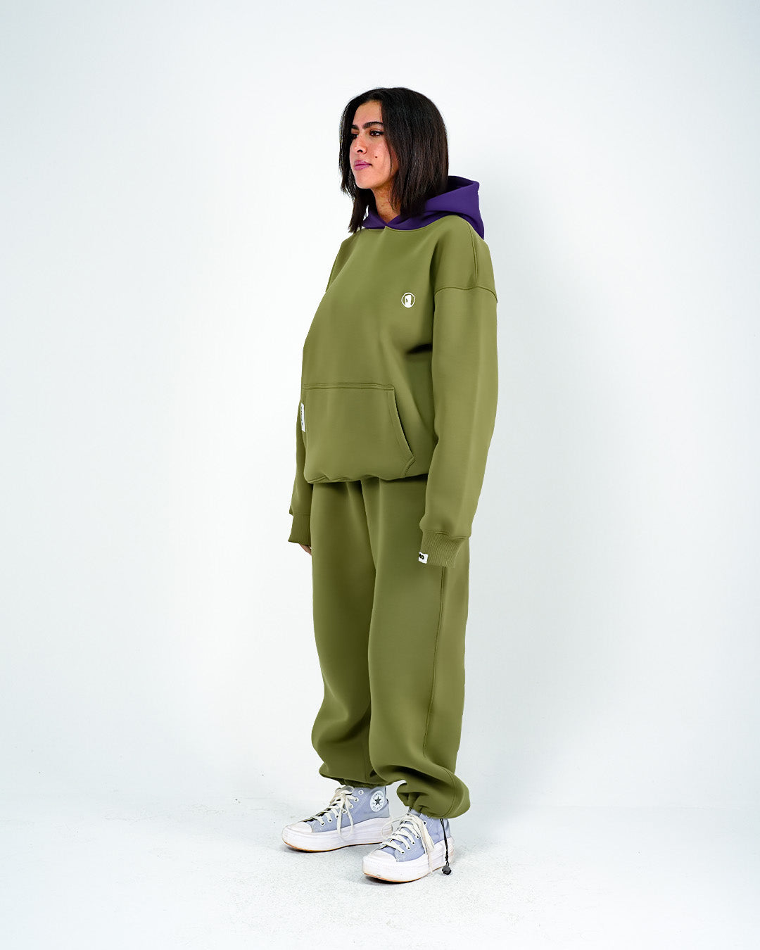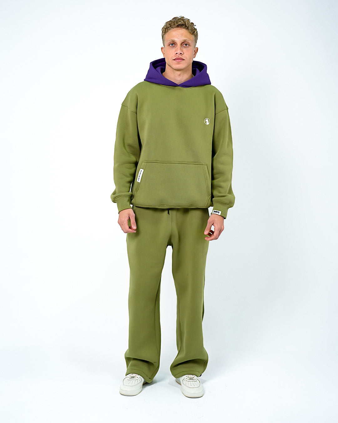 Wide-leg sweatpants with adjustable hem straps for a customizable fit.