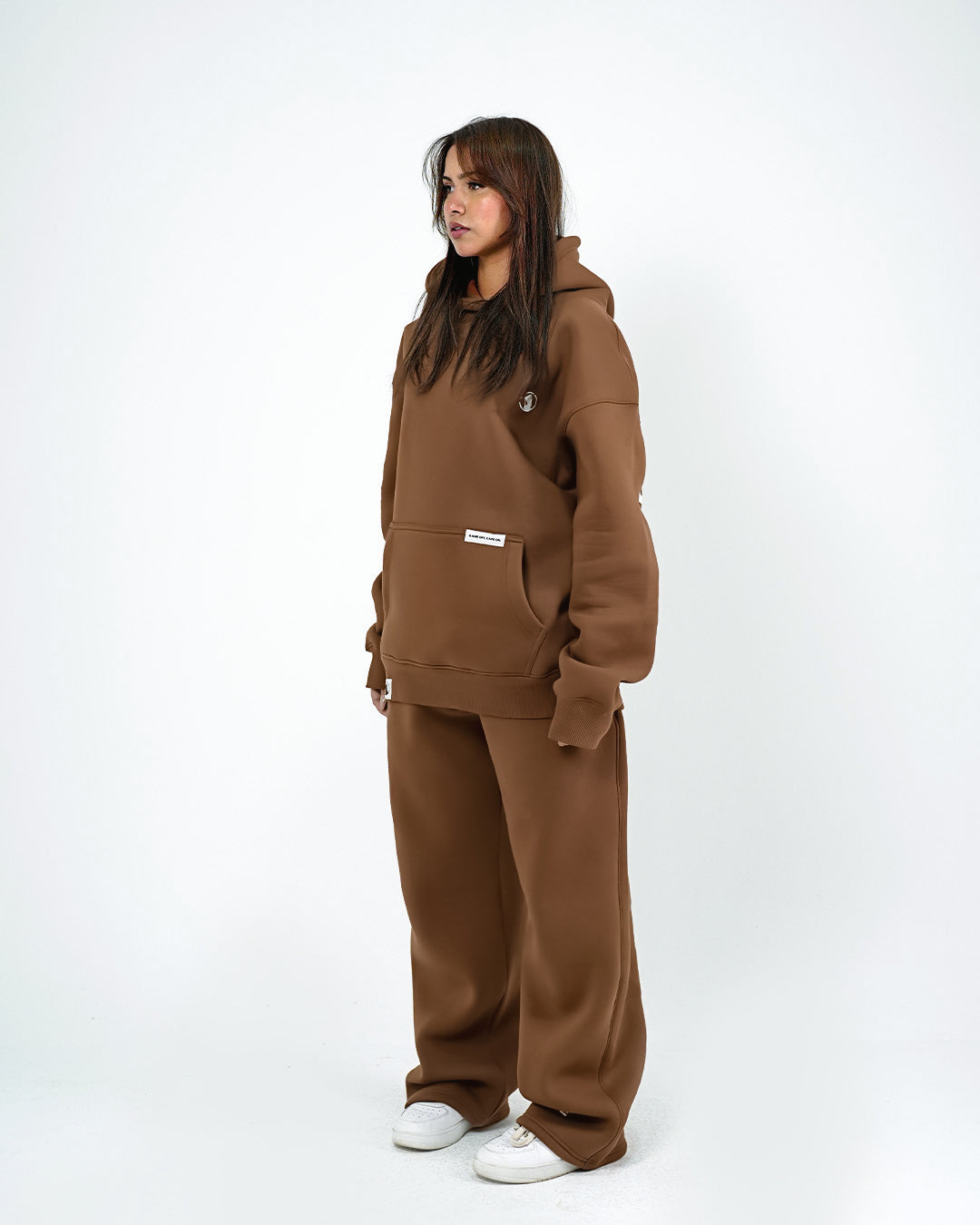 Wide-leg sweatpants with adjustable hem straps for a customizable fit.